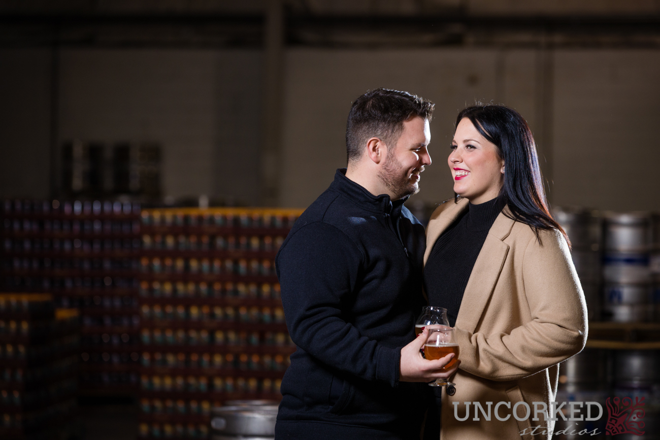 When we arrived to Neshaminy Creek Brewing Company we all immediately ordered a beer and got to work making the whole brewery our playground for their engagement images. Seriously the NICEST NCBC crew imaginable was working while we took photos. They were full of so much knowledge of the craft beer brewing process and gave us access to some pretty wicked backdrops for Marisalynn and Kevin’s engagement session.
