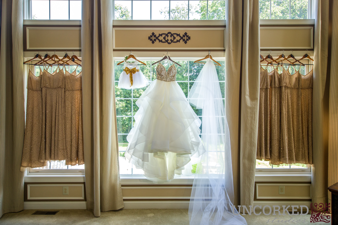 Brooklynne and her gaggle of girlfriends patiently had their hair and makeup done by Fashion Facez. All of Brookylnne’s wedding details were out on display and matched perfectly to her Hailey Paige gown from Kleinfeld Bridal. The bridesmaid’s shimmered in their Adrianna Papell gowns from Nordstrom. Perfect for their elegant black and gold wedding theme. Champagne flowed through the glasses and the bride and her 10 maids had fun laughing and recalling memories all morning.