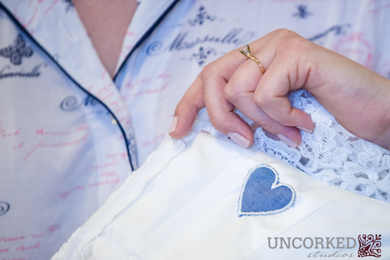 Nichelle and the bridesmaids got into their wedding attire at the Merion House just before heading to the first look. Nichelle’s Morilee gown from the Bridal Garden checked so many boxes for being the perfect gown for her, but checked the final box when she showed us the custom heart she had added into the gown as a tribute to her Dad – so sentimental because it was her something blue and taken from one of his shirts from when he served in the Navy.