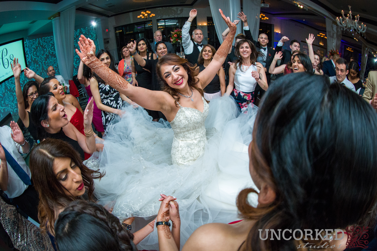 Not to worry, when Poonam and Scott returned to their reception at Cescaphe’s Vie, their guests were still enjoying the amazing Viennese buffet that goes on and on as far as the eye can see! Prior to sneaking out of their reception, Poonam and Scott had already enjoyed their first dances, and impressive petal canon entrance, some touching toasts from friends and family, as well as an amazing dance set from DJ Ravi Jackson. That could be a full reception all by itself! But the newlyweds just wanted to dance, so dance they did!