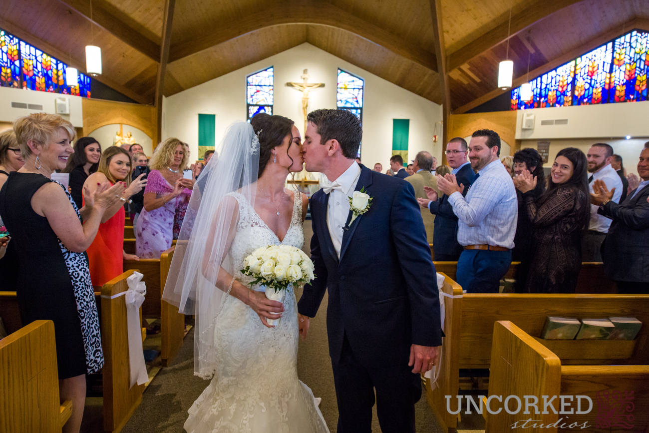 The bride and groom shared their ceremony with over 200 guests at St. Roberts Bellarmine Church in Warrington. The ceremony was full of family and friends sharing the responsibilities of providing music and the religious readings. When the two presented flowers to the Blessed Mother Statue they also visited Birds of Paradise flowers in honor of Robby’s late mother. Once they received their final blessing from Monsignor Beisel the two excitedly exited the church to cheers from their guests as they shared a kiss at the head of the aisle. 4LC Studios captured all the newlywed glow (saying “I-DO” was probably their favorite part of the whole day) on camera so they can relive it every time they want to!